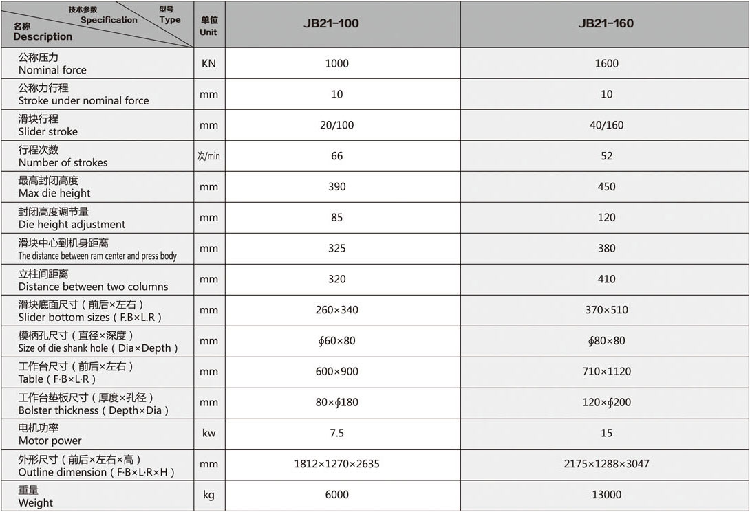 采用整體鑄鐵機(jī)身,不可傾斜,廣泛應(yīng)用于沖孔、